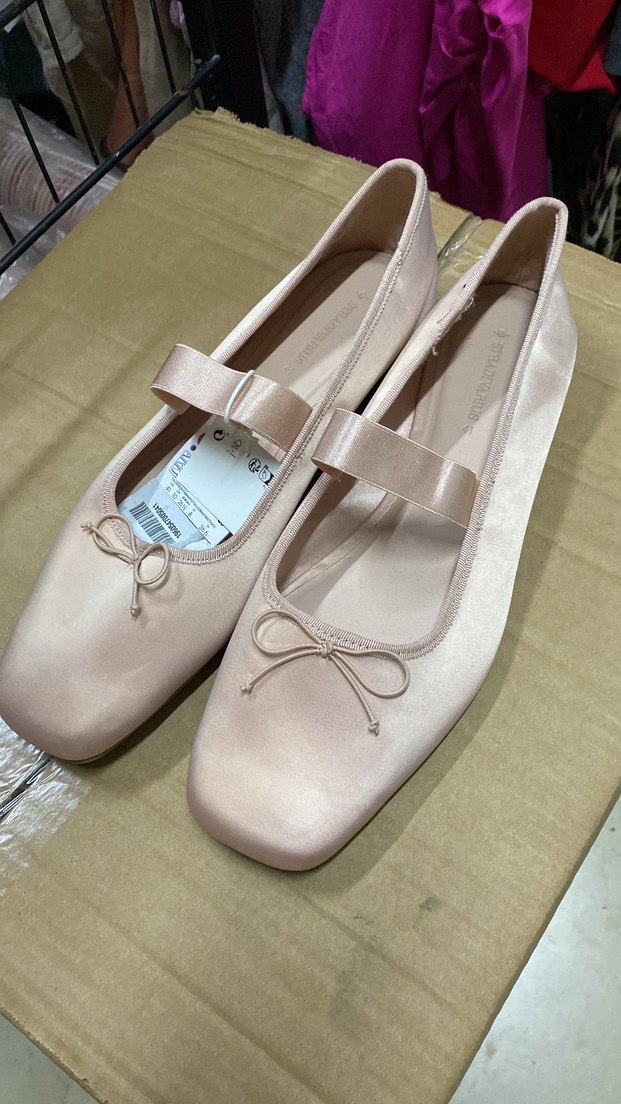 Bej saten kumaştan, blok topuklu ve Mary Jane kayış detaylı kadın babetler, düğünler için zahmetsiz şıklık sunar.