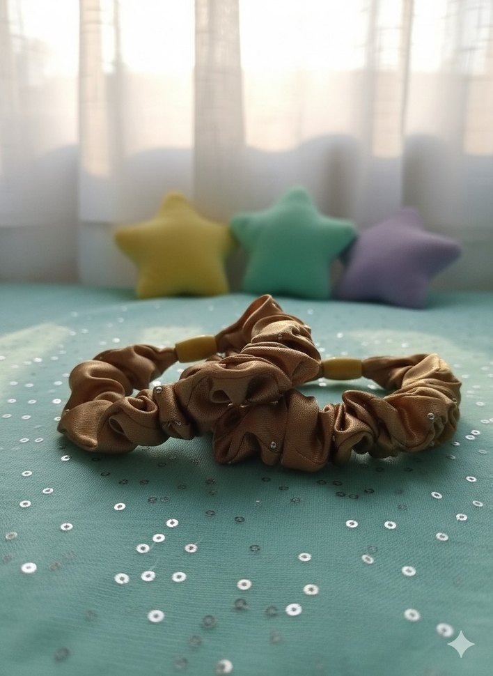 Bej saten fırfırlı saç tokaları, minimalist ve bohem tarzıyla şık bir görünüm sunar.