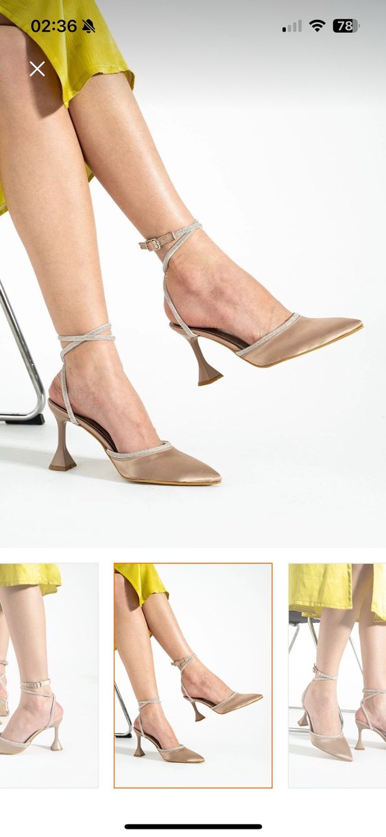 Bej saten stiletto topuklu, bağcıklı bilek kayışlı, yılan derisi desenli, modern tasarımlı kadın ayakkabısı, romantik akşamlar için uygun. Kalıbı dar 37 giyene daha uygun olur. Burnu uzun olduğu için maalesef kırılıyor onun harici çok temiz