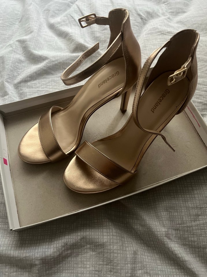 Bej saten kumaştan, parlak görünümlü ince topuklu ve tokalı kadın ayakkabısı. Minimalist ve zarif tarzda, romantik akşamlar için uygundur. Bir kere bir düğünde max yarım saat giyildi yani yepyeni