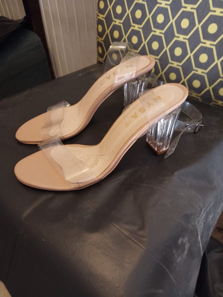Bej renkte, şeffaf bantlı ve yılan desenli blok topuklu kadın terlikler. Günlük kullanıma uygun, çağdaş ve pastel tonlarda tasarlanmıştır.