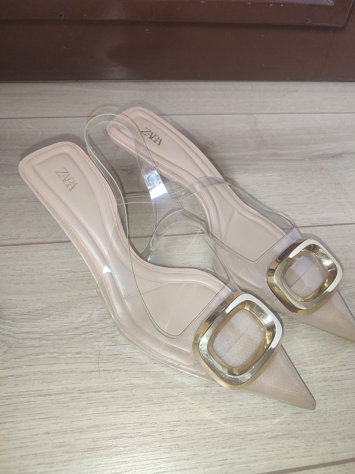 reklam çekiminde bir kaç saat kullanıldı. Bej renkte, şeffaf tasarımlı ve ön kısmında tokalı küçük topuklu kadın ayakkabısı. Paris tarzını yansıtan çağdaş bir model, günlük kullanıma uygun.