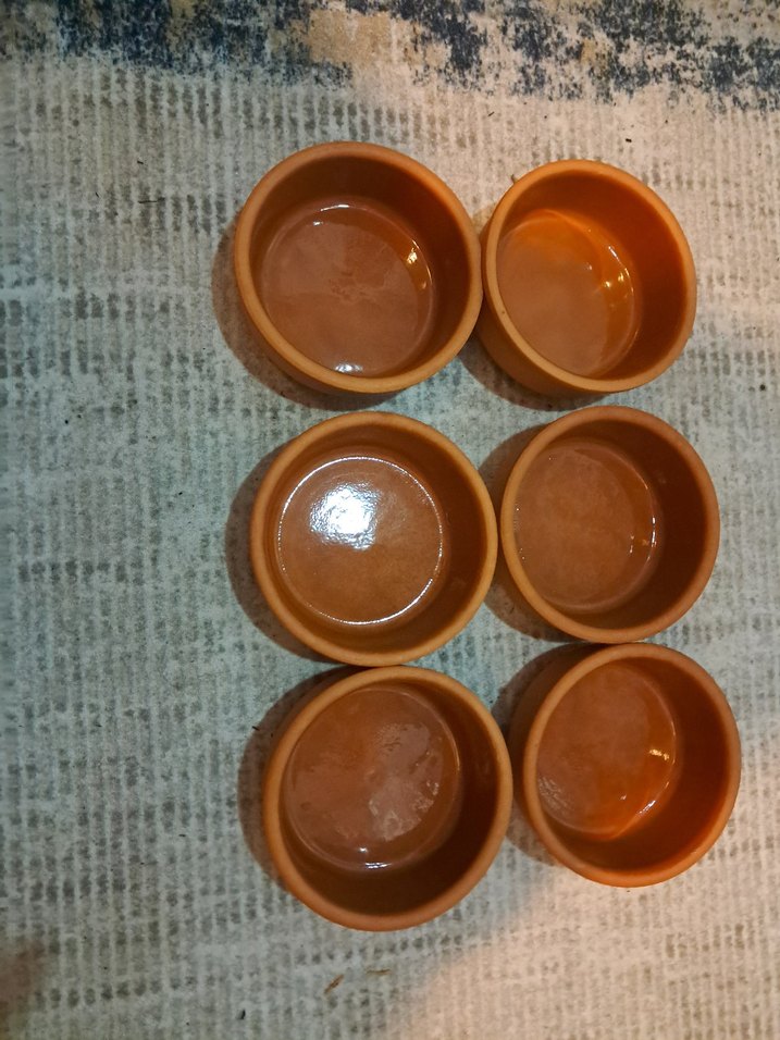 Bej renkli, pürüzsüz yüzeye sahip 6 adet toprak yuvarlak kase seti, yiyecek servisi için uygundur.