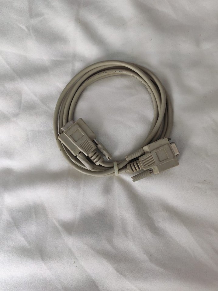 Veri aktarımı ve iletişim için standart konektörlere sahip bej seri bağlantı kablosu.