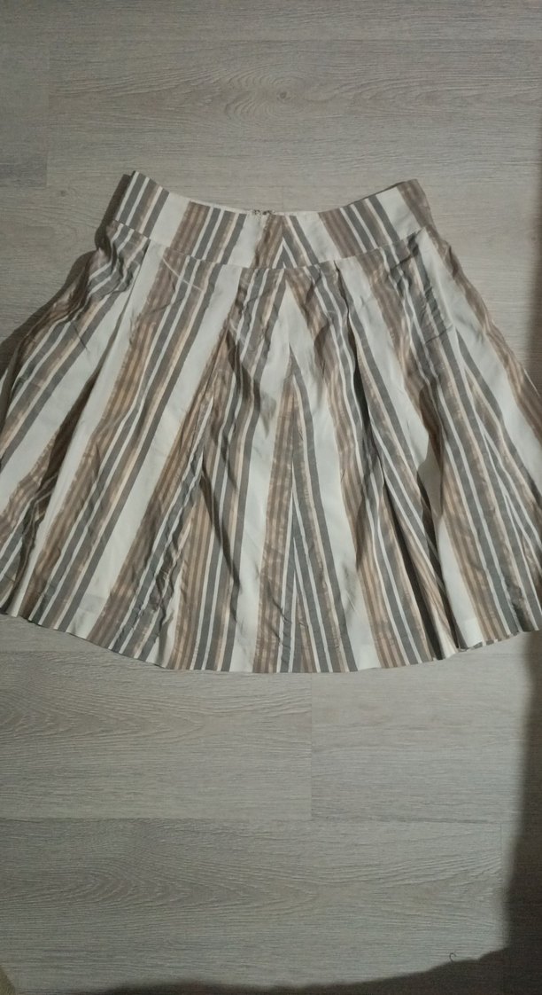 Bej şeritli pileli Etek