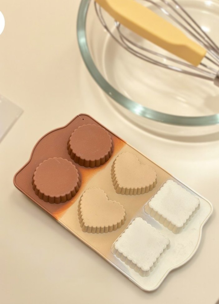Bej Silikon Kalp ve Kare Kek Kalıbı