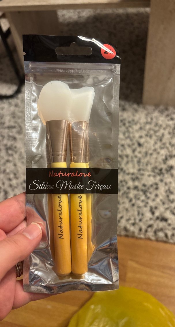 Doğal ahşap saplı, bej renkli iki silikon maske fırçası seti. Yüz maskelerinin pürüzsüz uygulanması için uygundur. Naturalove markalı. ️
