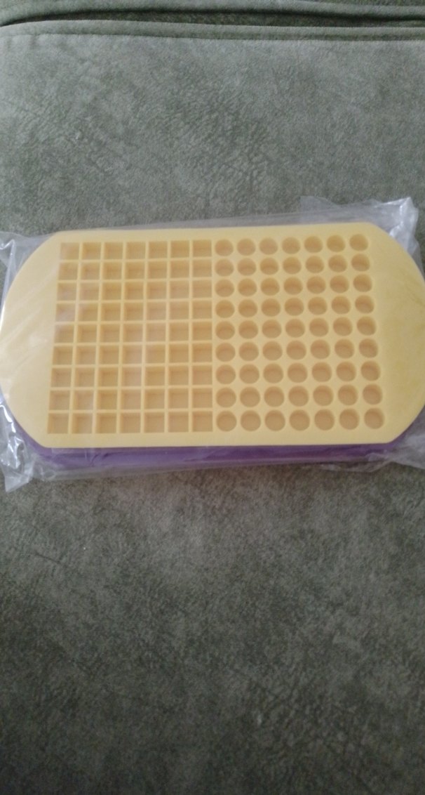 Küçük kare ve yuvarlak boşluklara sahip açık bej renkli silikon kalıp. Esnek ve kullanımı kolaydır.