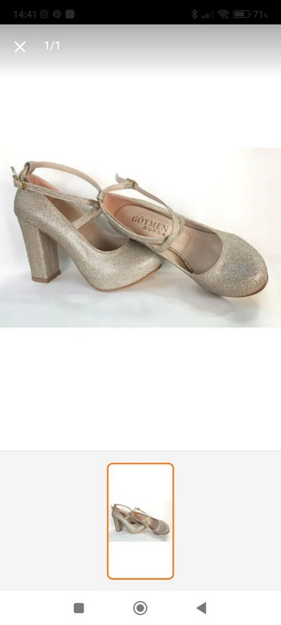 Bej simli kadın topuklu ayakkabı, blok topuklu ve modern klasik tarzda. Lastik malzemeden, düğünler için uygun. Marka: GOYMEN. ✨