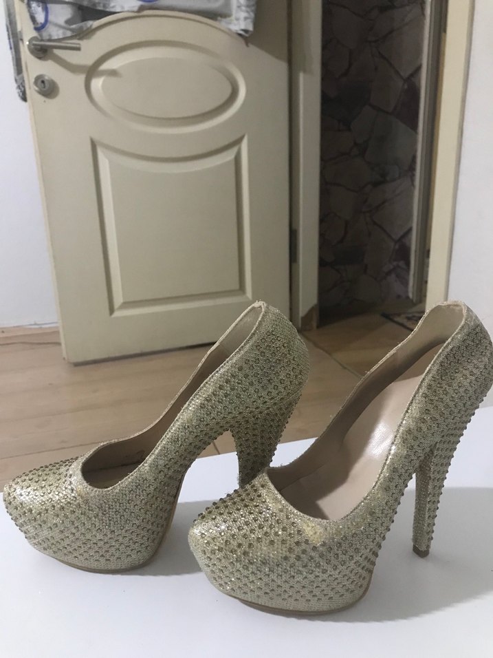 Bej renkli, simli ve hafif yılan derisi desenli platform topuklu abiye ayakkabı. Düğün ve özel geceler için uygundur, rahat kauçuk tabanlıdır.