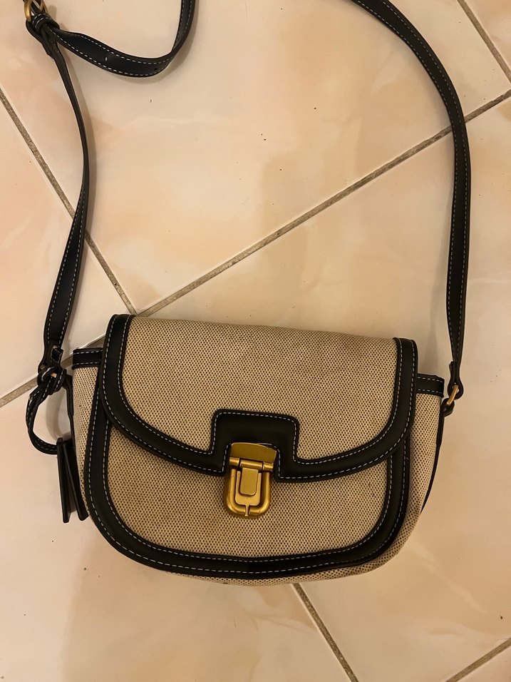 Bej ve siyah deri, tokalı kapaklı ve ayarlanabilir askılı kadın çantası, Paris tarzını günlük rahat sokak modasıyla buluşturuyor. Biraz kirlenmesi mevcut