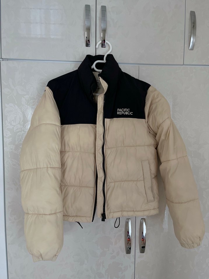 Bej ve siyah renklerde, uzun kollu, kısa kesim kadın kışlık mont. Yumuşak ve sıcak kumaştan, günlük kullanım için uygun, rahat sokak stili görünümüne sahip. ️