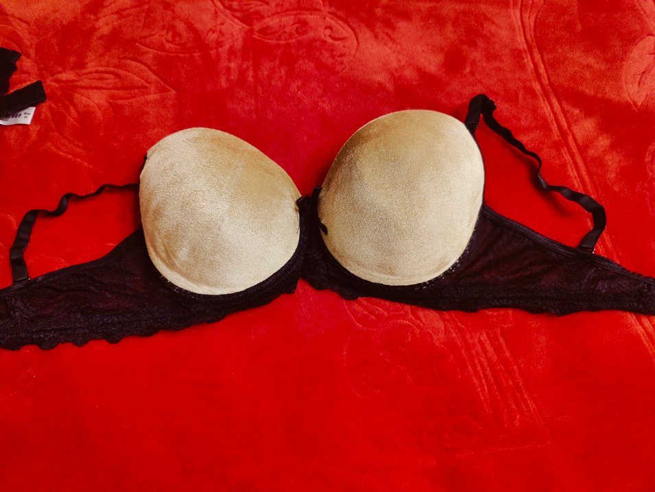 Bej yumuşak kumaş ve siyah dantel detaylı, ayarlanabilir askılı rahat ve şık kadın sütyeni. 90 Beden