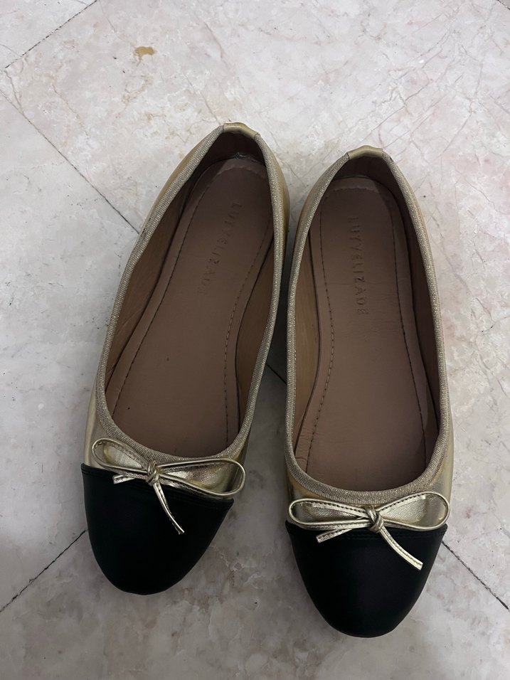Bej ve siyah kadın babetler blok topuklu ve tokalı fiyonk detaylıdır. Kauçuk malzemeden yapılmış, modern klasik tarzı ve günlük konforu bir araya getirir.