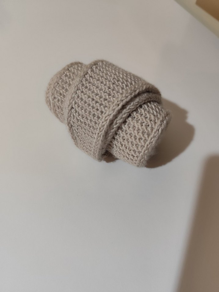 Bej renkli, dokulu örgü fular