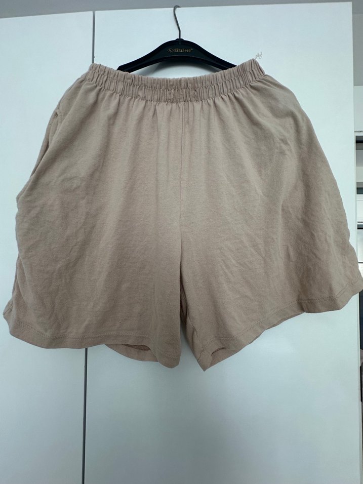 Yumuşak keten kumaştan, bol kesim bej şort. Kısa boy ve elastik bel bandı ile rahatlık sağlar. Günlük kullanıma uygun sade ve temel stil.