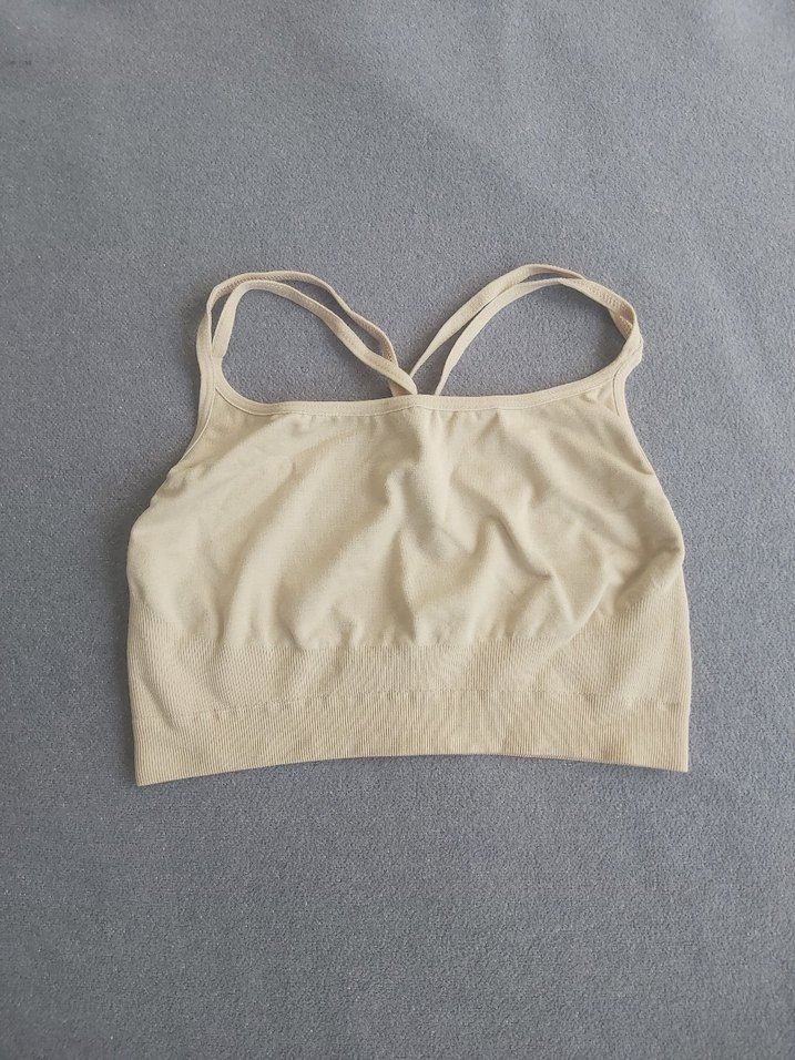Bej renkte, ince çift askılı, yumuşak ve esnek kumaştan rahat spor sütyeni.Yumuşacık bir kumaşı vardır,sırtındaki ip detaylarıyla oldukça şık gözüküyor.M-L beden uyumludur.