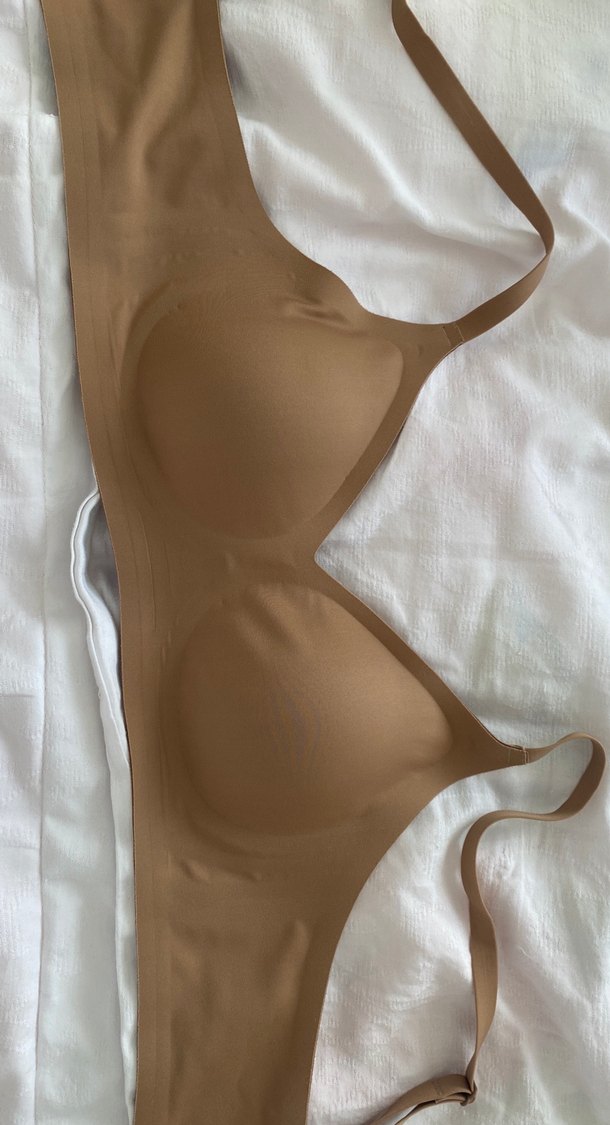 Hafif bej renkte, dikişsiz ve ayarlanabilir askılı sütyen, rahat günlük kullanım için uygundur. Spor tarzına uygundur. #hiccamasiri