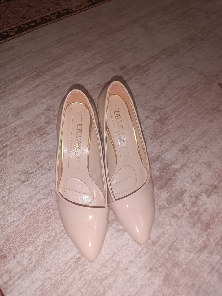 Bej renkli, sivri burunlu ve düz yüzeyli stiletto topuklu kadın ayakkabısı. Ofis için uygun, klasik ve modern tarzda, dayanıklı kauçuk malzemeden. hiç kullanılmadı