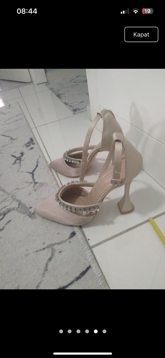 Bej renkte, tokalı ve yılan derisi desenli stiletto topuklu ayakkabılar. Düğünler için çağdaş ve şık tasarıma sahip, kauçuk malzemeden üretilmiştir.