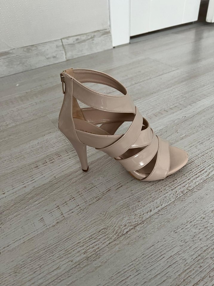 Bej renkte, tokalı ve stiletto topuklu kadın abiye ayakkabı. Minimalist ve çağdaş tasarıma sahip, kauçuk malzemeden üretilmiştir. sayılı giyildi tertemiz alana şimdiden hayırlı olsun