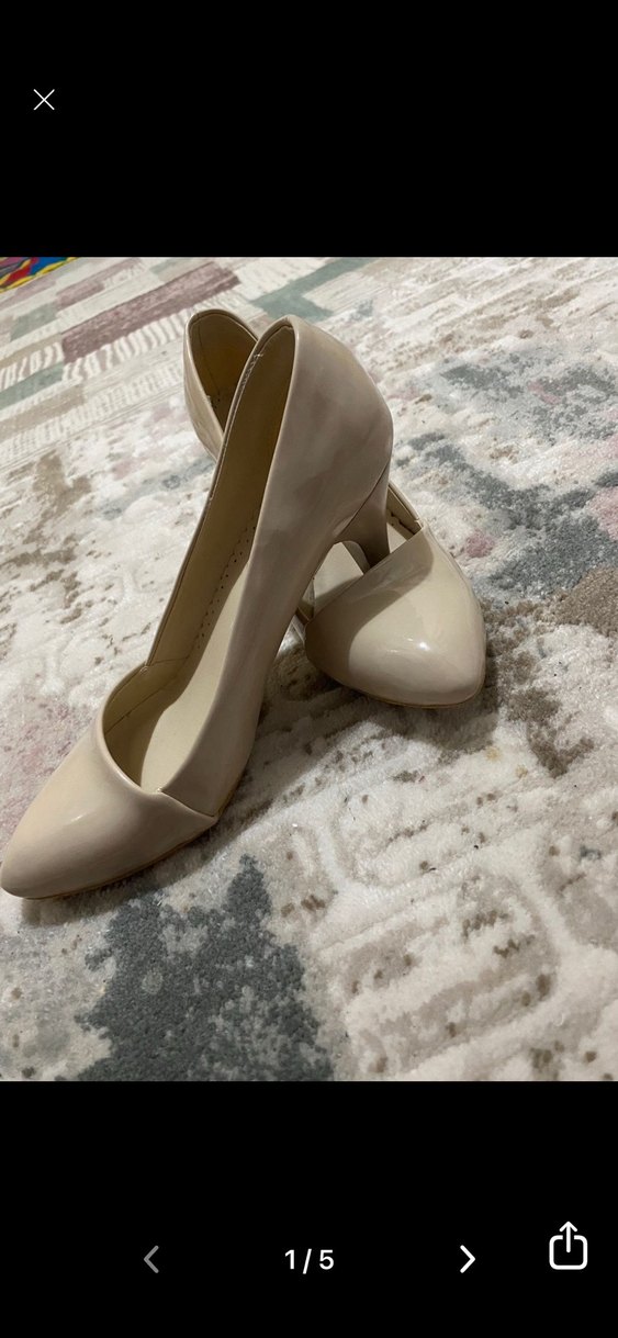 Bej renkte, kauçuk malzemeden yapılmış stiletto topuklu ayakkabı. Modern klasik stile sahip olup düğünlerde ve özel anlarda zahmetsiz şıklık sağlar. Pastel ton ve desensiz tasarım klasik elegansı yansıtır.