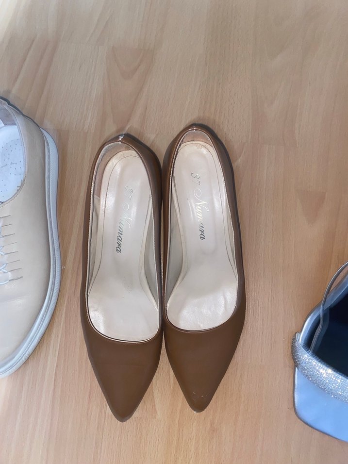 Bej renkte, desensiz stiletto topuklu kadın ayakkabısı,