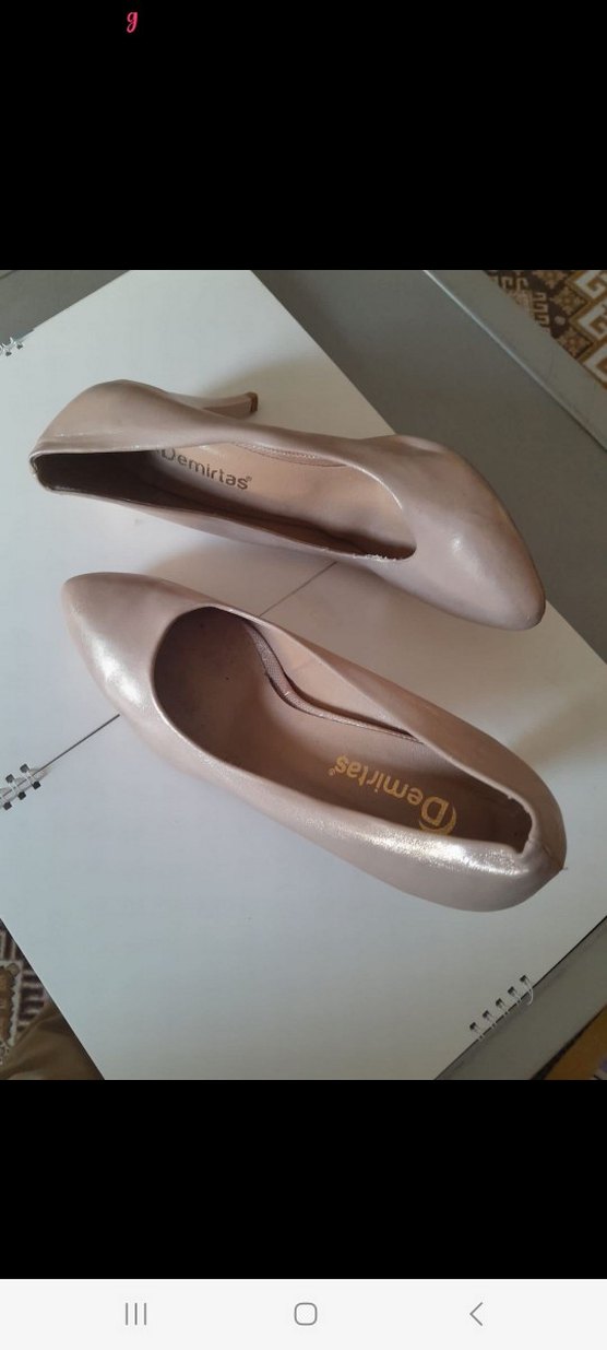 Bej renkte, kauçuk tabanlı stiletto topuklu kadın ayakkabısı. Düz desensiz, ofis için uygun ve zahmetsiz şıklık sunar.