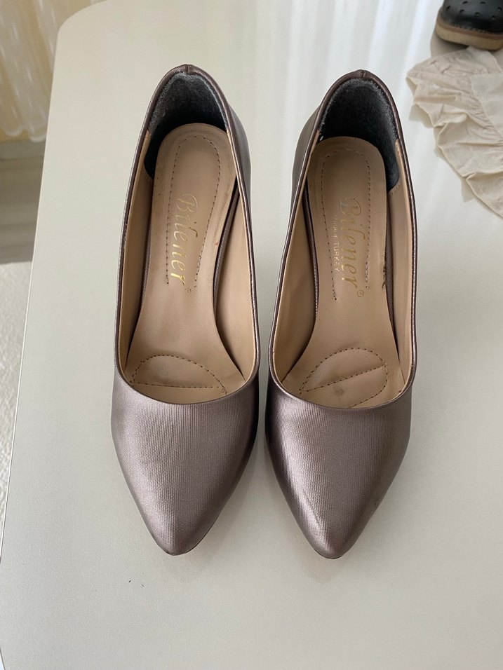 Fotoğrafta gösterildiği gibi sadece topuk kısmı zedelenmiştir onun dışında kusuru yoktur 36 numara normal kalıp çok az giyildi yılan desen görünümlüdür