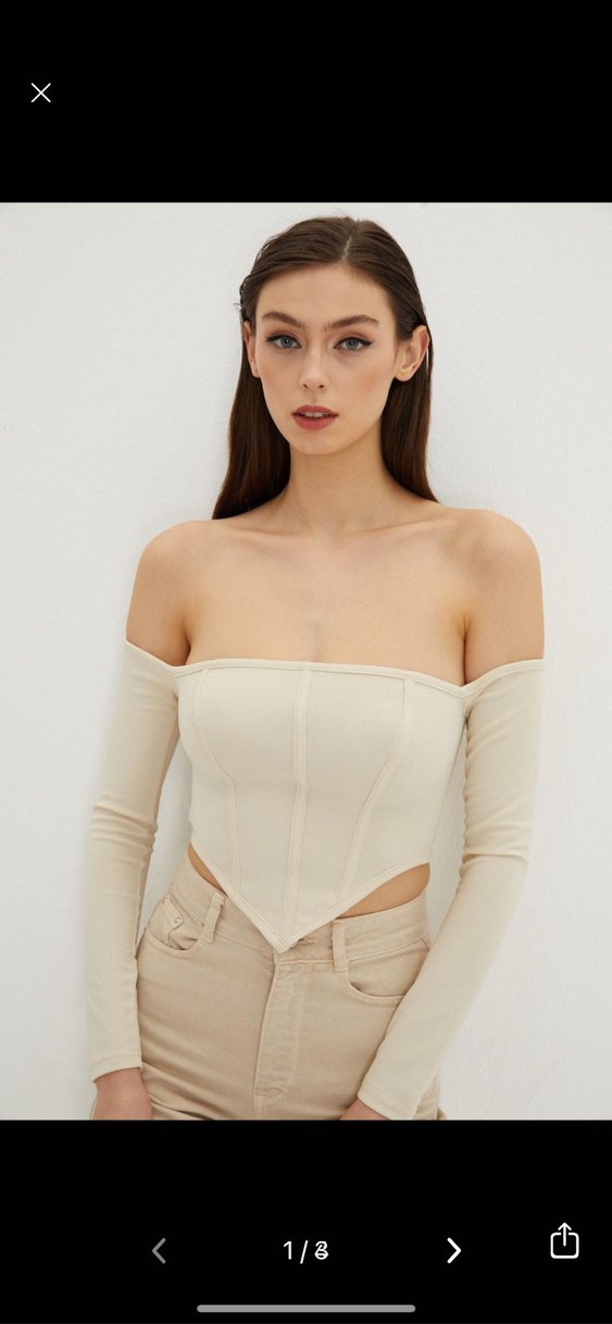 Bej straplez crop arkası fermuarlı S beden kilodan kaynaklı bir kez giyildi sadece defosu yoktur