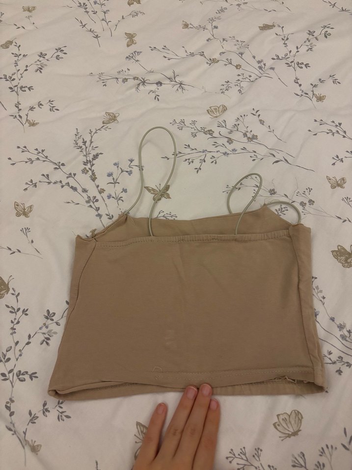 Bej renkli, straplez ve keten kumaştan yapılmış bu atlet, ince ve vücuda oturan kesimiyle minimalist ve şık bir görünüm sunar. Günlük sokak modası için uygundur.