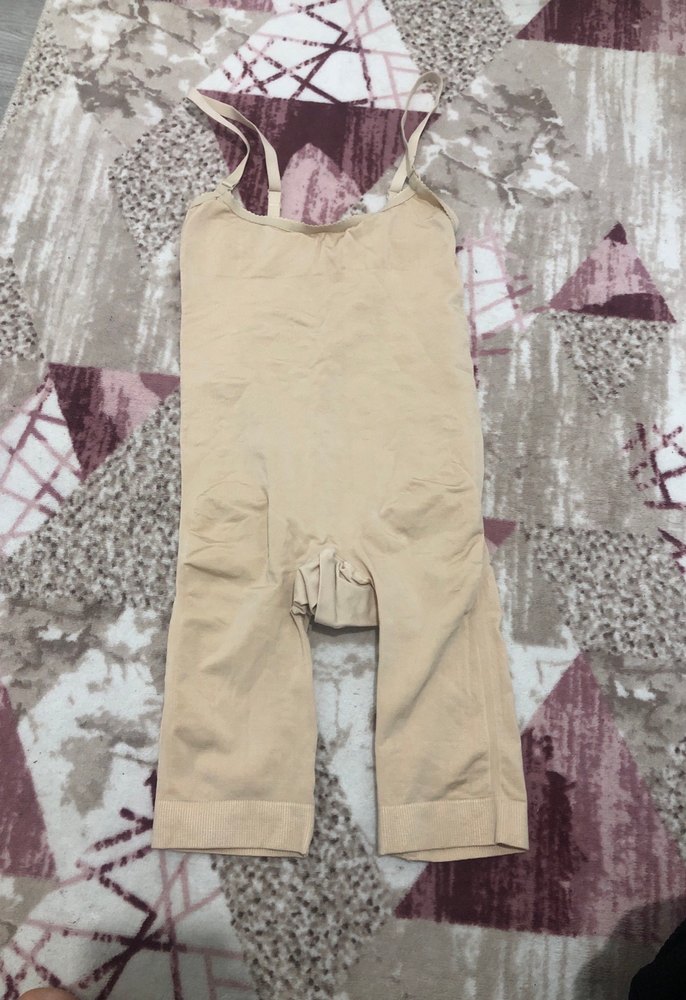 Bej renkli, straplez ve midi boy hamile tulumu. Yumuşak sentetik kumaştan, kolsuz ve bohem tarzda, günlük kullanım için rahat ve şık.