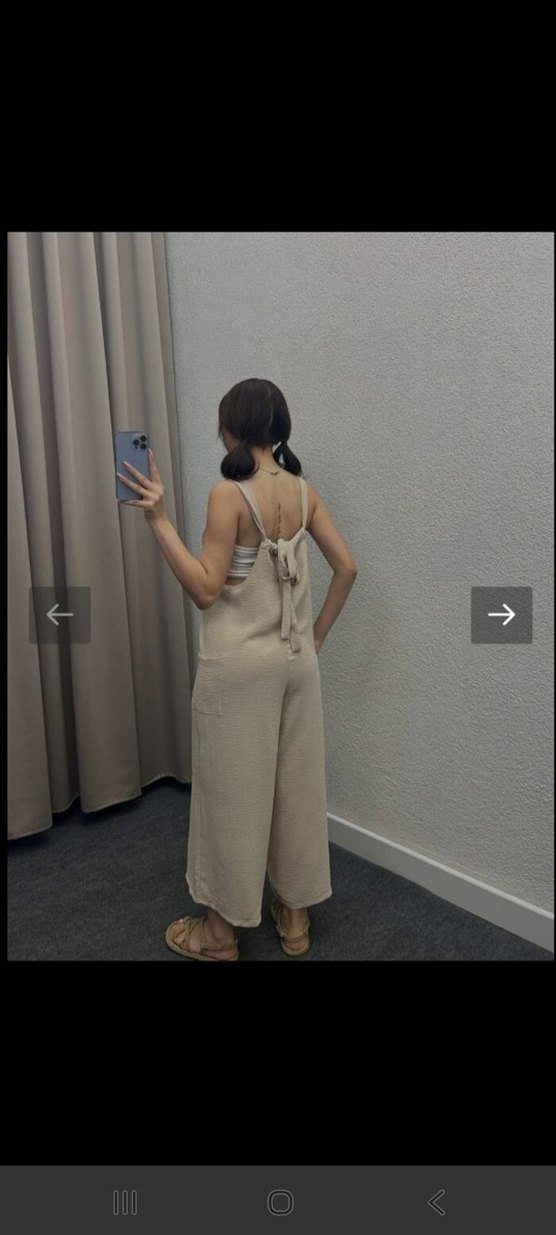 Bej renkli, straplez, triko kumaştan yapılmış, bol kesim ve midi boy tulum. Rahat ve şık görünüm sunar, günlük kullanım için uygundur.