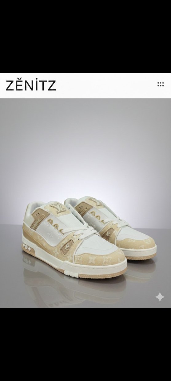 Bu erkek spor ayakkabıları, açık bej süet malzeme ve bağcıklı tasarımıyla sportif ve rahat sokak stili için uygundur. Marka adı ZENiTZ görünür.