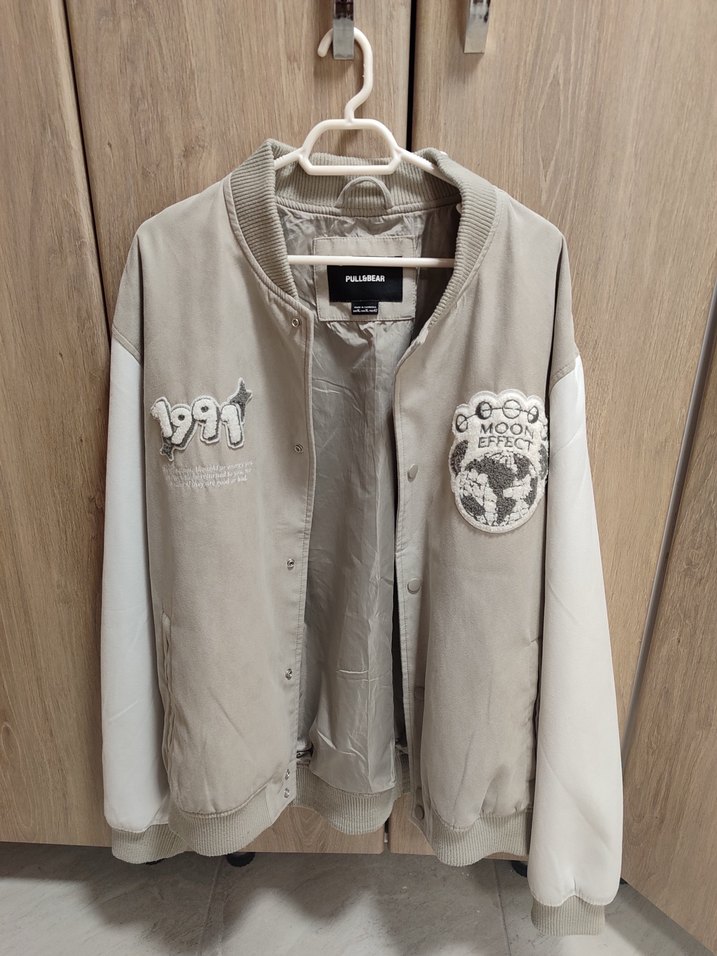 Bej süet kumaştan, uzun kollu, düğmeli ve baskılı detaylara sahip pull&bear ceket. Salaş kesim ve normal boyda, günlük kullanım için uygundur. Az kullanılmış eski sezon.