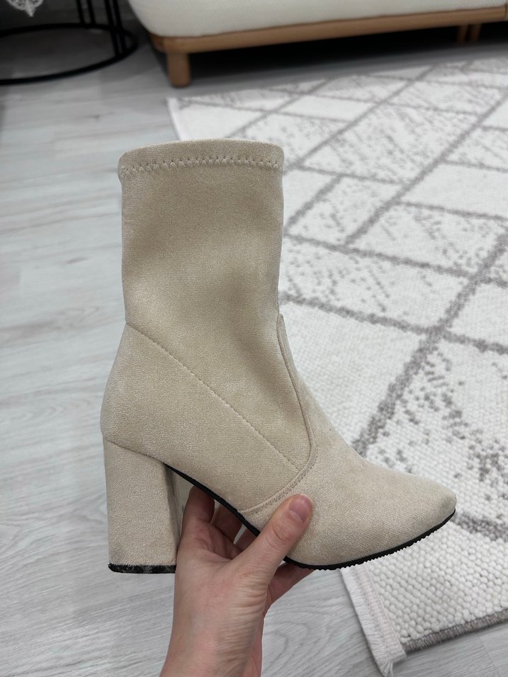 Bej Süet Blok Topuklu Bot