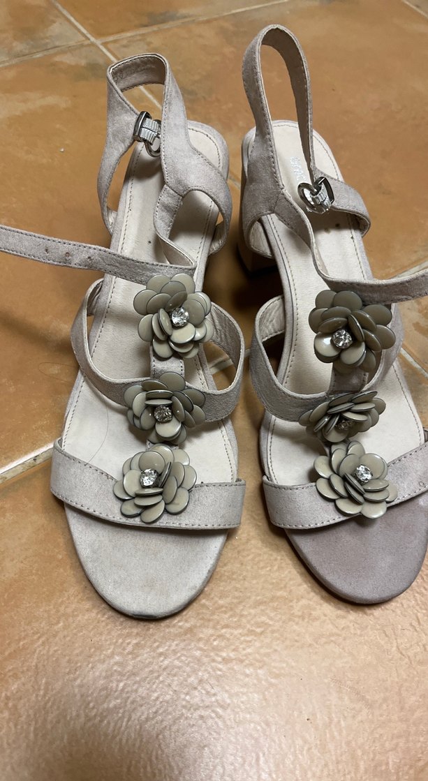 Bej süet malzemeden, dolgu topuklu, çiçek detaylı ve tokalı kayışlı kadın ayakkabısı. Bohem stil ve klasik zarafeti bir arada sunar.