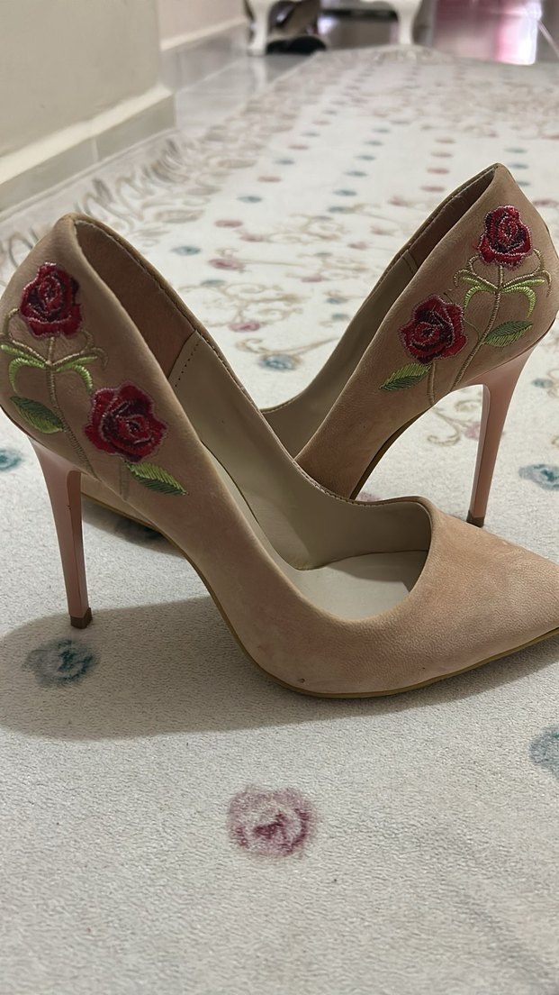 Bej süet stiletto, çiçek işlemeli ve dantel detaylı, romantik akşamlar için hafif ve şık klasik tarzda. 1 defa giyildi hiç bir sorun yok. Sayfamda aynı numara ürünler var bakabilirsiniz