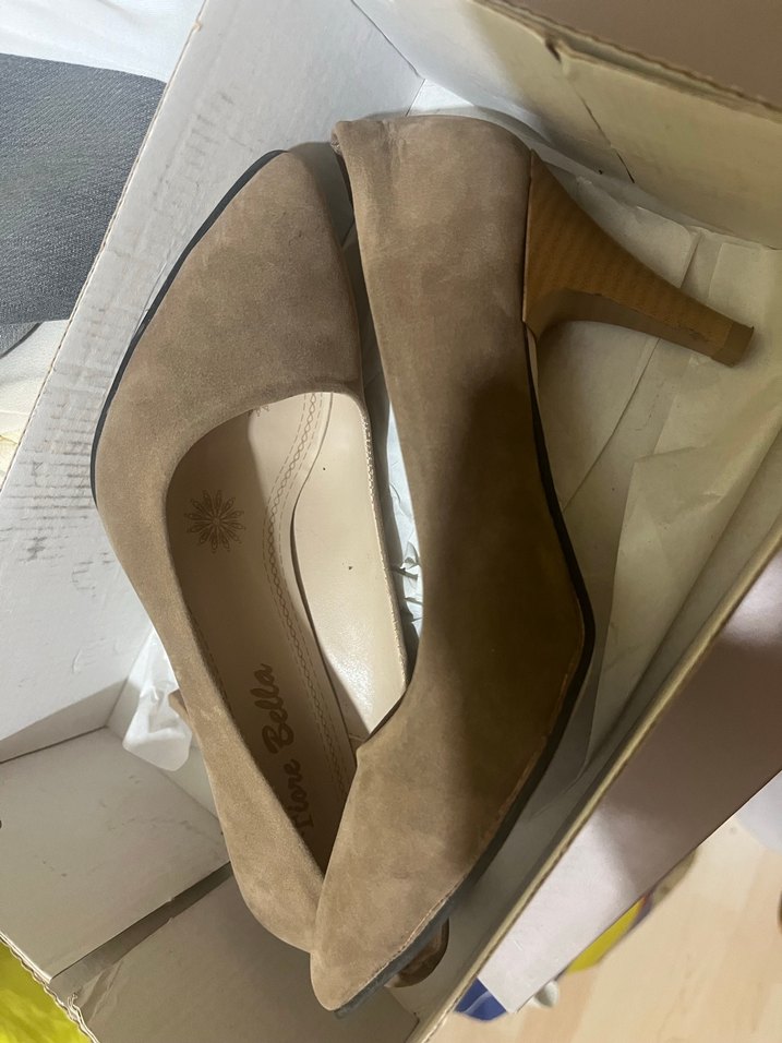 Bej süet kadın stiletto, çivi topuklu, günlük kullanıma uygun klasik ve şık tasarım.