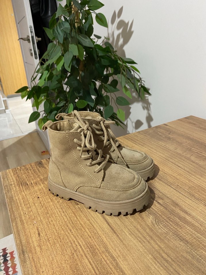 Bej süet bot ve rahat bir görünüm sunar. Desensiz, normcore tarzda ve günlük kullanıma uygun.
