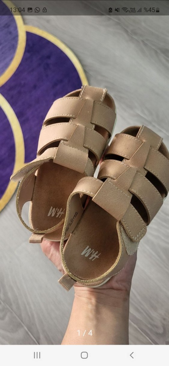 Bej süet malzemeden yapılmış, cırt cırtlı kapanışa sahip çocuk sandaletleri. Pastel tonlarda, desen içermeyen ve sokak modasına uygun tasarım.