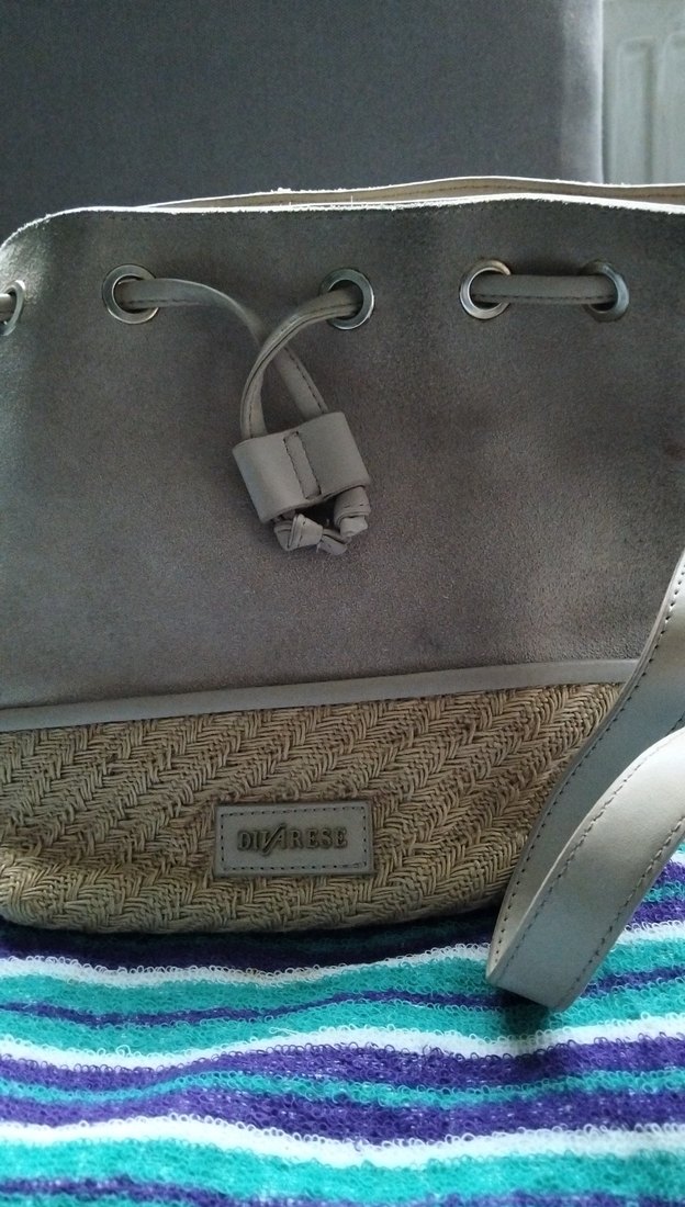 Bejsüet malzemeden yapılmış, buckled detaylı, desen içermeyen kadın el çantası. Bohem ve sokak stiline uygun, önünde DIVARESE marka yazısı bulunur.