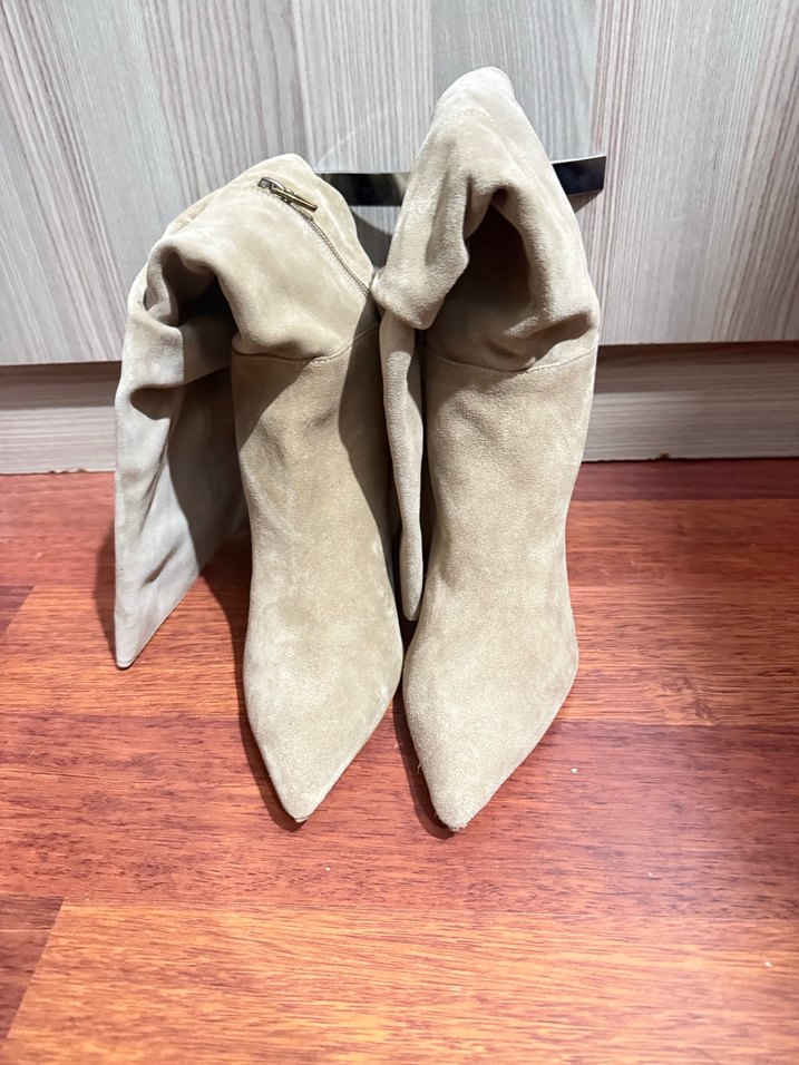 Bej Süet kalın Topuklu Bot
