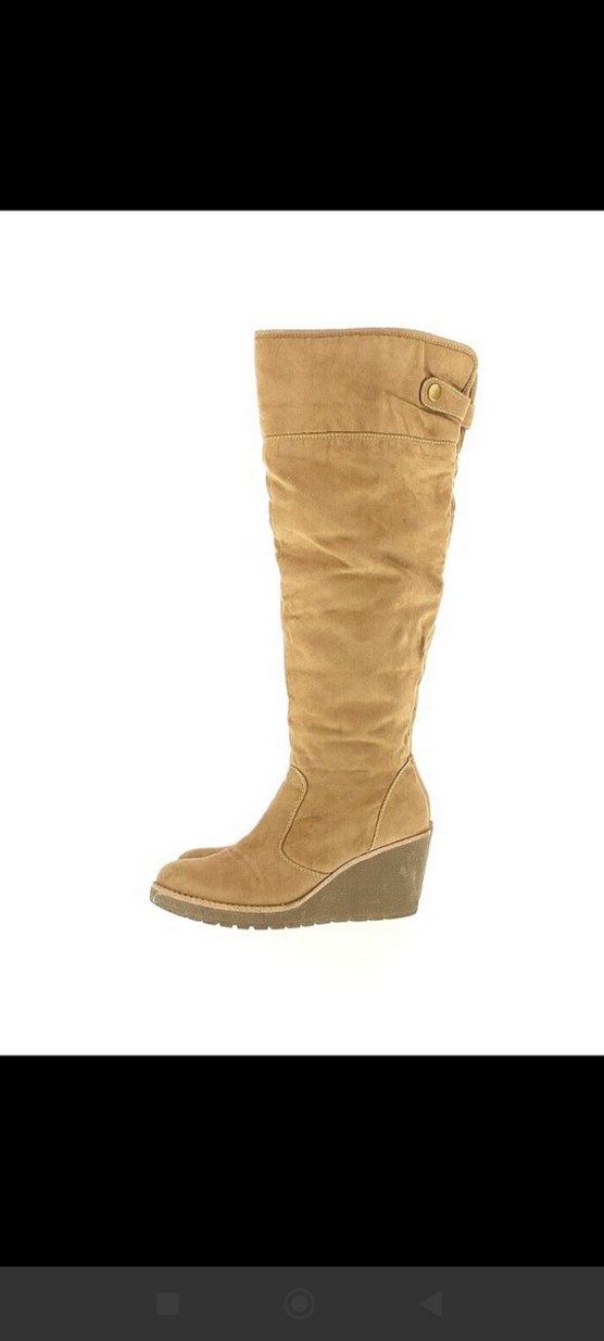 Bej Süet Dolgu Topuklu Dizüstü Çizme,38 numara , dolgu topuk