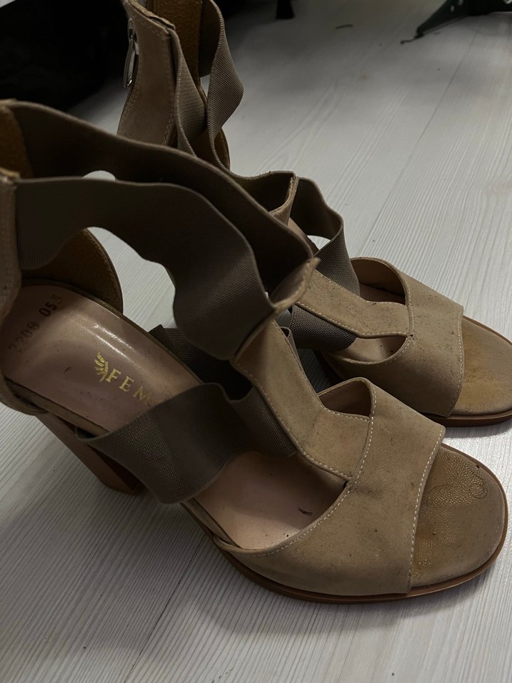 Bej Süet Dolgu Topuklu Kadın Ayakkabı