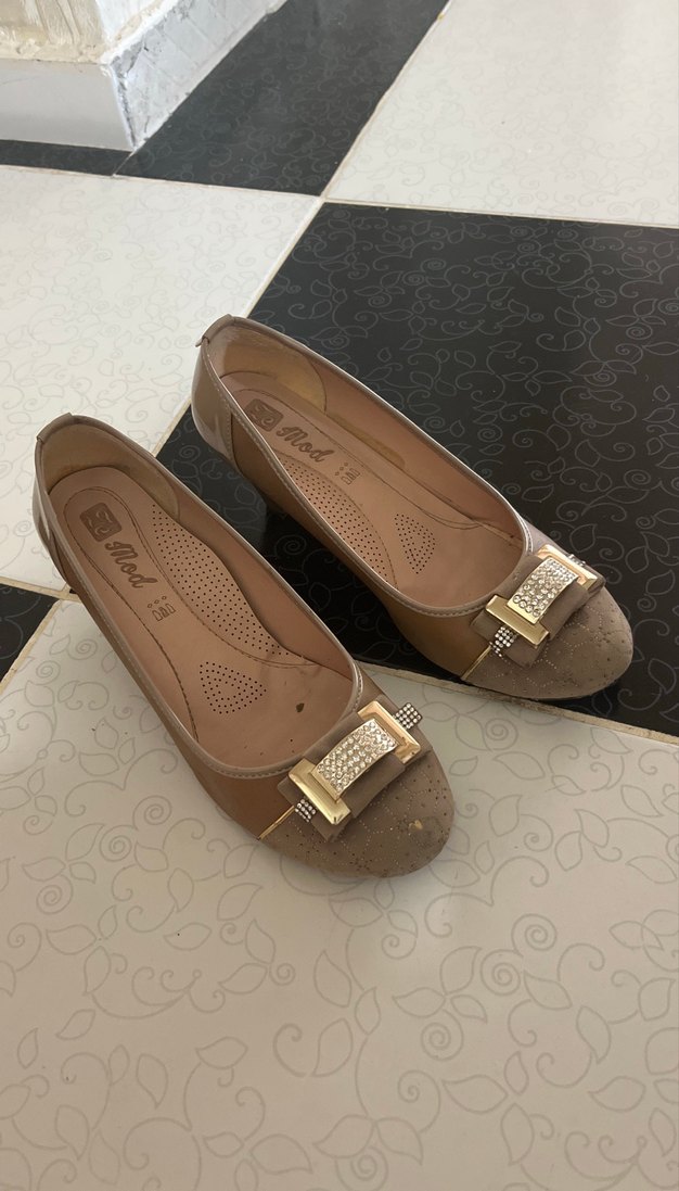 Bej Süet Dolgu Topuklu Tokalı Kadın Babet
