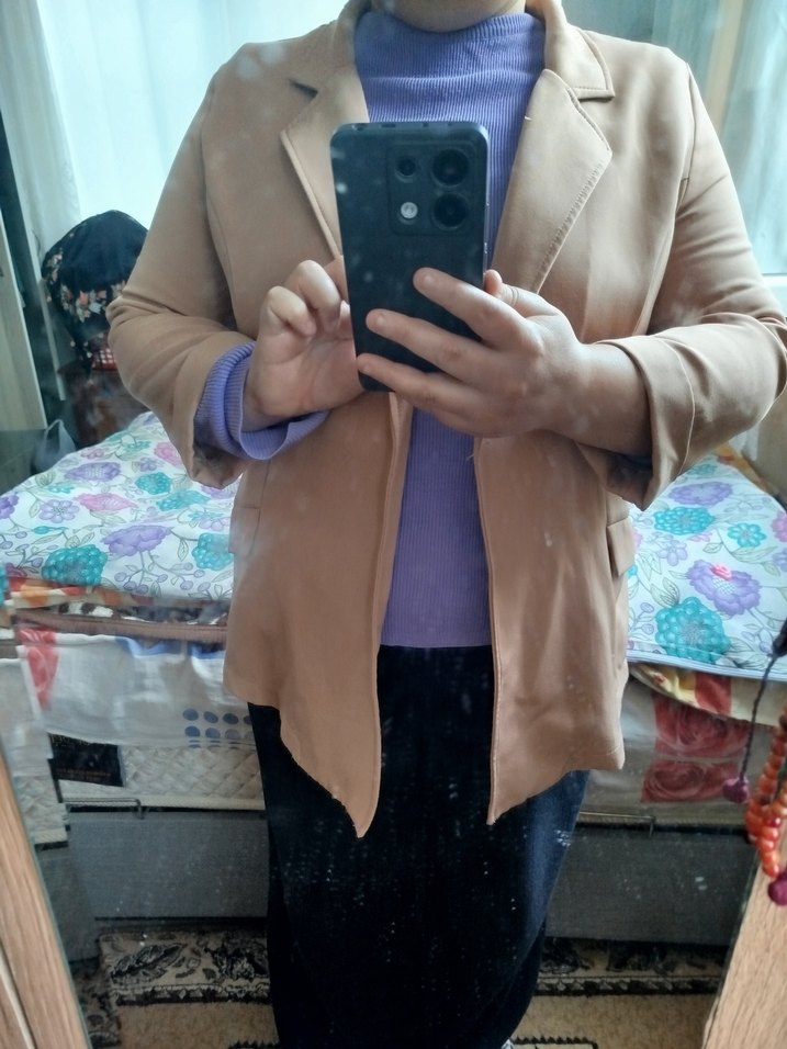 Bej renkli süet kumaştan üretilmiş, düğmeli ve uzun kollu kadın blazer ceket. Normal boyda, regular kesim ve klasik yakalıdır. Günlük kullanıma uygundur.