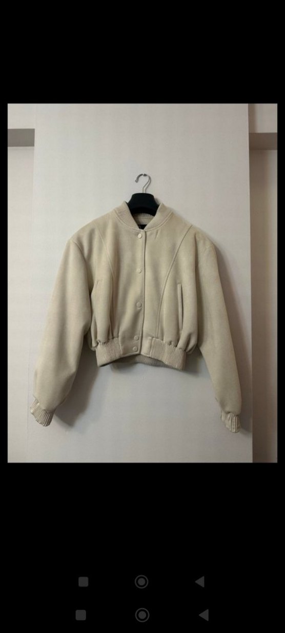 Bej süet kumaştan, düğmeli, uzun kollu ve yuvarlak yakalı kadın ceket. Salaş kesimi ve midi boyuyla minimalist sokak stiline uygun rahat bir model.