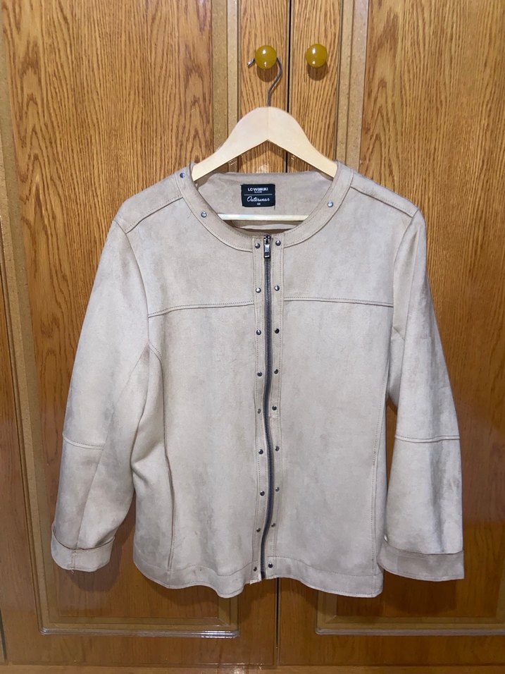 Bej renkli süet kumaştan, düğmeli kapanışlı, uzun kollu, normal boyda kadın ceketi. Rahat kesimiyle günlük kullanıma uygundur. Hiçbir sorunu yok fazlalıktan satıyorum.