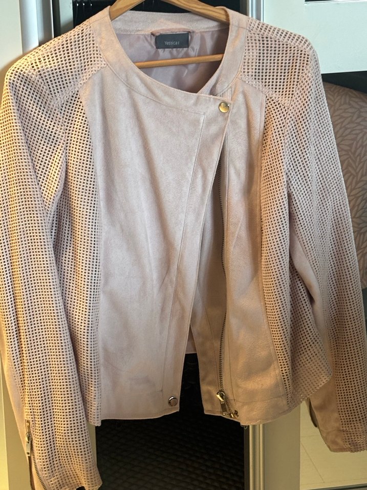 Bej Süet Düğmeli Kadın Deri Ceket Pudra pembe